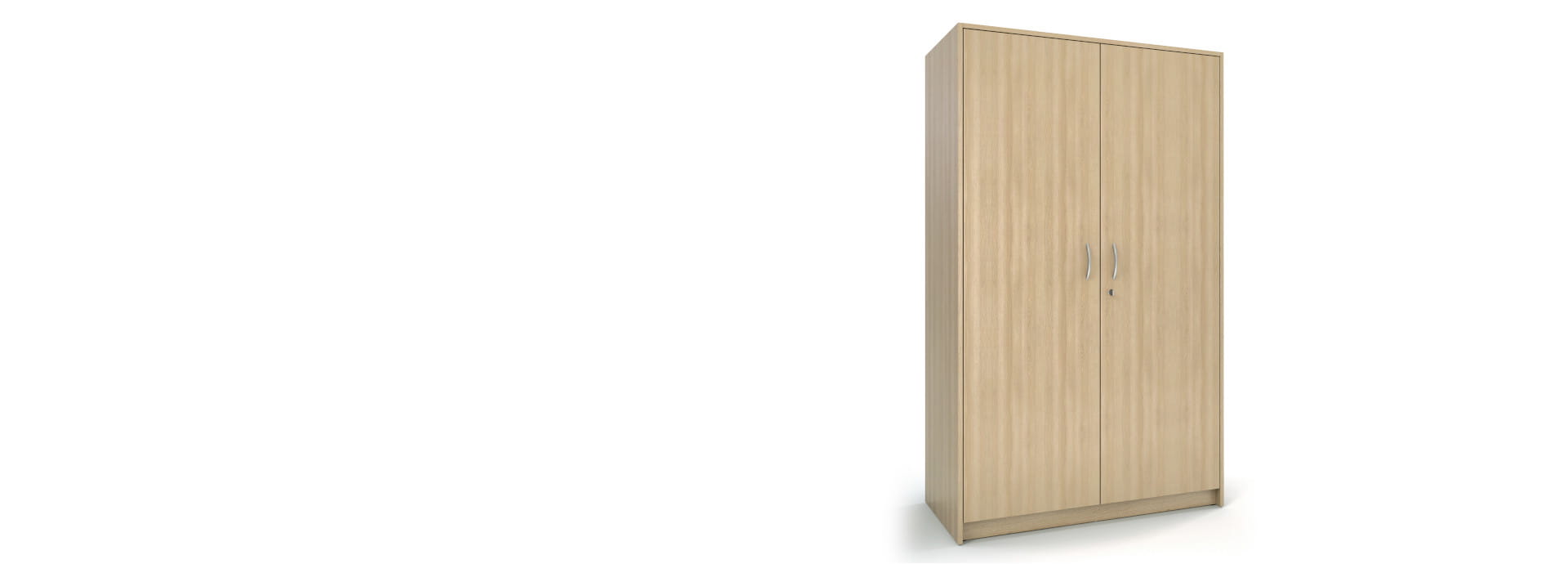 Armoire une personne à 2 portes, avec tringle à vêtements et étagères L'armoire offre un espace de rangement spacieux. Avec ses poignées incurvées de 128 mm, elle est également très facile à utiliser par le résident. Les amortisseurs intégrés minimisent le niveau de bruit lors de la fermeture des portes. Il est possible d'incorporer un coffre à différentes hauteurs.