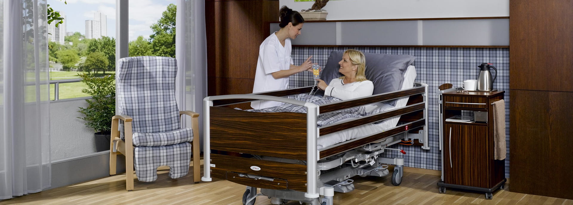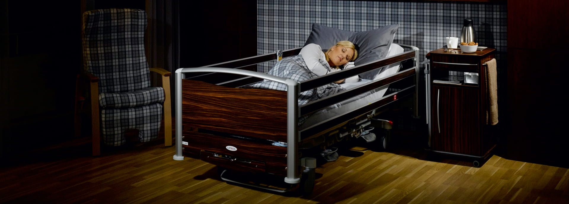 Les applications de l’inclinaison latérale sont nombreuses : changement des dispositifs d’incontinence, soins et traitement du dos et du corps du patient/résident, effleurages ou prévention des escarres. Pour la réfection du lit c’est un avantage indéniable. Tourner un patient/résident en position latérale requiert énormément de force et engendre de nombreux risques de blessures pour le soignant, notamment dorsales. Latera, avec sa fonction latéralisation, rend possible le pivotement sans effort.